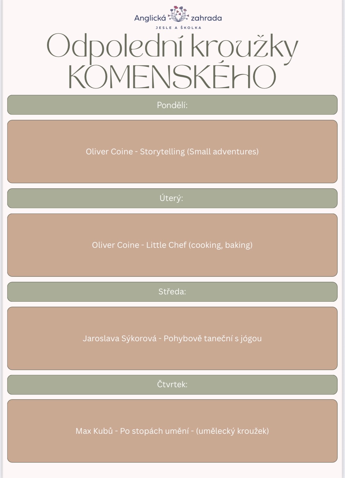 Kulinářskou akademii pro děti ve věku 3-6 let povede lektor Oliver Coine v angličtině. Posuneme laťku našeho běžného školkového vaření o něco výš – od pudinku až k sushi, pečení chleba, bramborovému salátu nebo třeba domácím linguine. A přidáme i geografický či historický rozměr – během kynutí těsta si rozšíříme obzory a v průběhu roku obletíme celý svět.